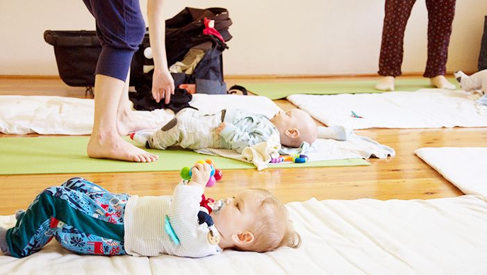 Väter*/Partner*innen erlernen die Babymassage und widmen sich ganz ihrem Kind. Zur selben Zeit findet die Rückbildungsgymnastik für die Mütter* statt. Eine Stunde Zeit, sich selbst etwas Gutes zu tun.